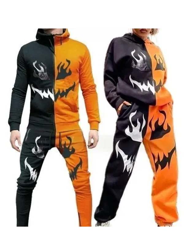 Mens and Womens Orange and Black Couple Tracksuit For Halloween