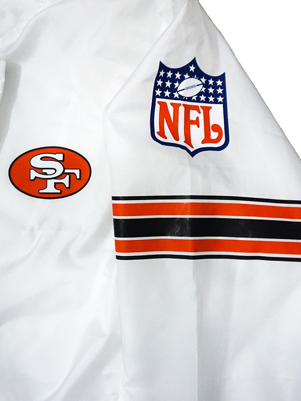 There is also find the San Francisco 49ers-inspired logo at the back and left breast with NFL/Starter branded emblems at the left sleeve that no other jacket has.