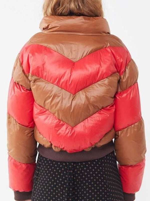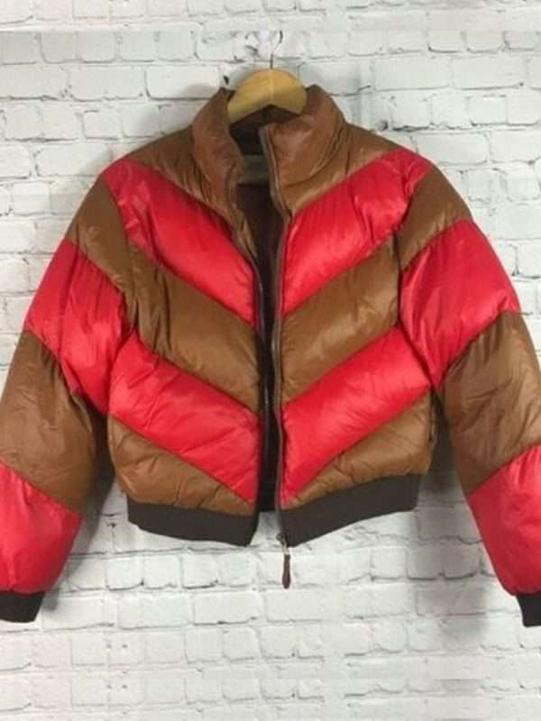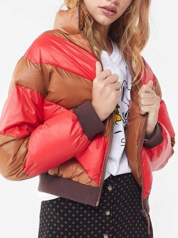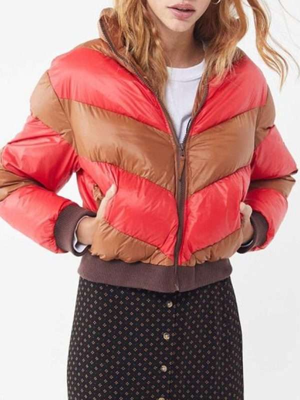 This Willow Shields Spinning Out Puffer Jacket is made from high-quality satin fabric with a soft inner viscose lining to ease out all the discomfort and cold. Serena Baker Puffer Jacket features a stand-up style collar along with a front open in zipper fastening closure and full-length sleeves having rib knitted cuffs. Offered in highly bright tones of red and brown color, it comprises two capacious side waist pockets to carry your accessories and a rib-knitted hemline.
