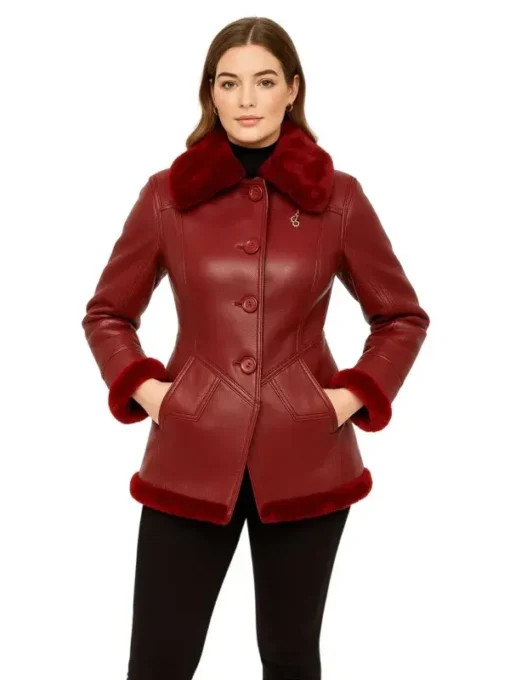 Designed for those who value sophistication. Women’s Burgundy Leather Outerwear never goes out of fashion. The plush shearling trim, elegant cut, and durable construction. It all adds up to its fantastic wear for anyone who values high-end winter wear. It beautifully merges form and function.