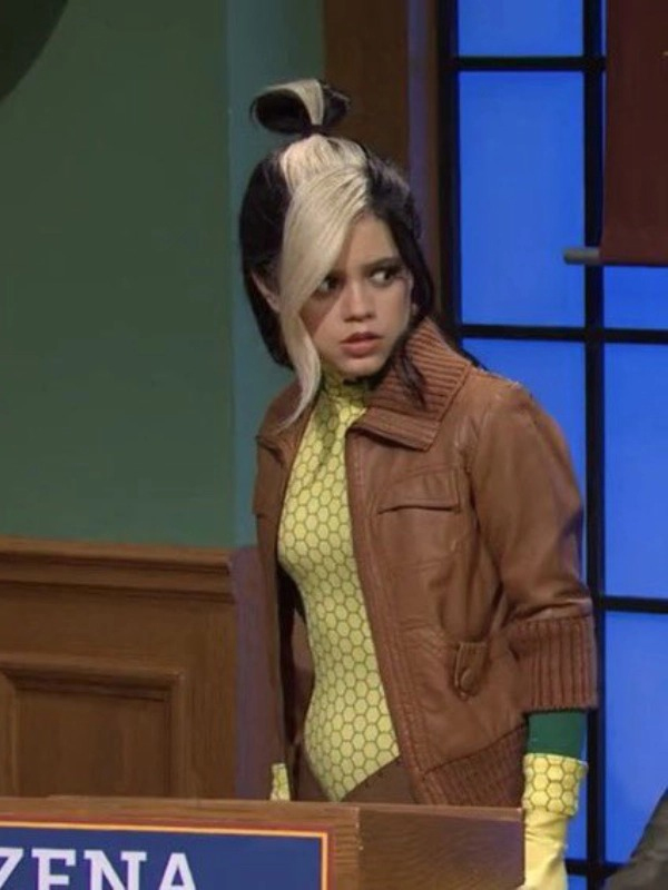 Jenna Ortega Saturday Night Live Rogue Brown Leather Jacket