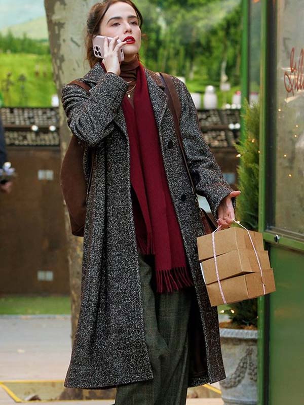 Zoey Deutch Something from Tiffany’s Rachel Meyer Gray Trench Coat