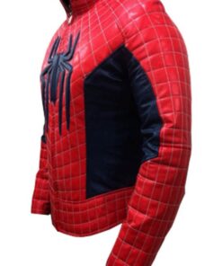 The Leather motorcycle jacket Spiderman brings out some features that not only highlight the look but also gives a practical wearing experience. The front closure for this amazing jacket is made from zipper style. This causes it to be worn easily and take off when needed. A shirt-style collar, for the Spiderman motorcycle costume makes it look stylish yet best for road traveler lovers.