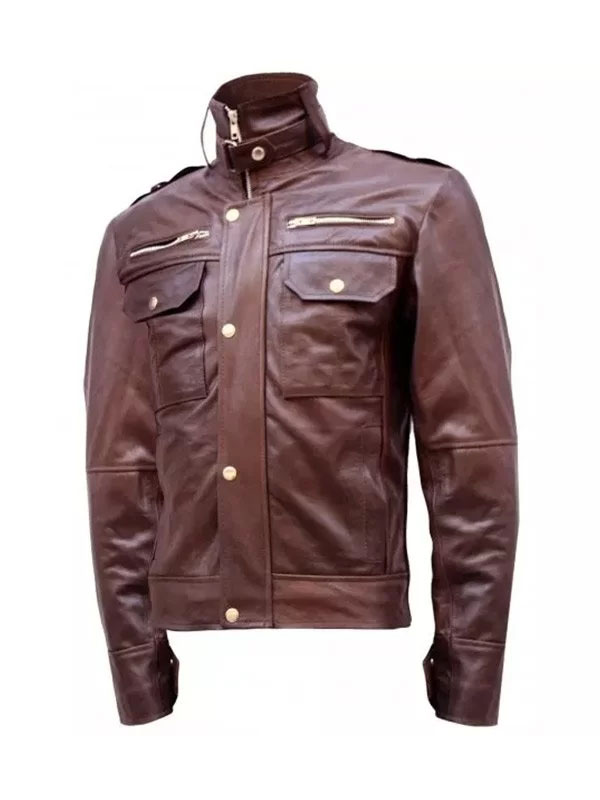 Be the first to review “Standing Collar Chocolate Brown Leather Jacket”