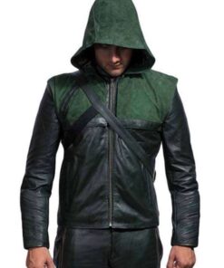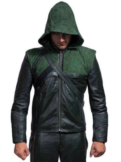 Stephen Amell Hooded Leather Jacket