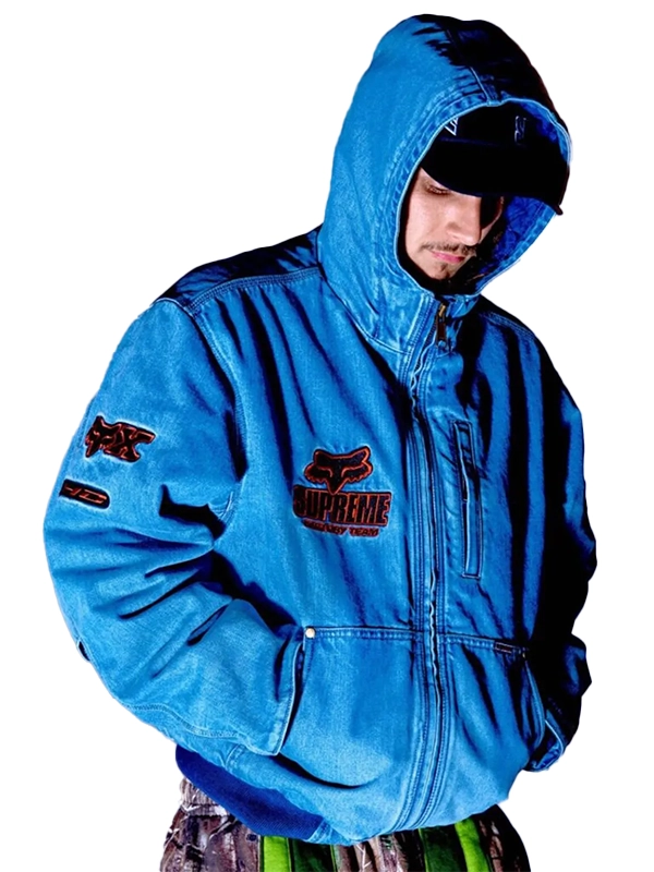 Own the Supreme Fox Racing Denim Hooded Work Jacket for a Bold Everyday Look