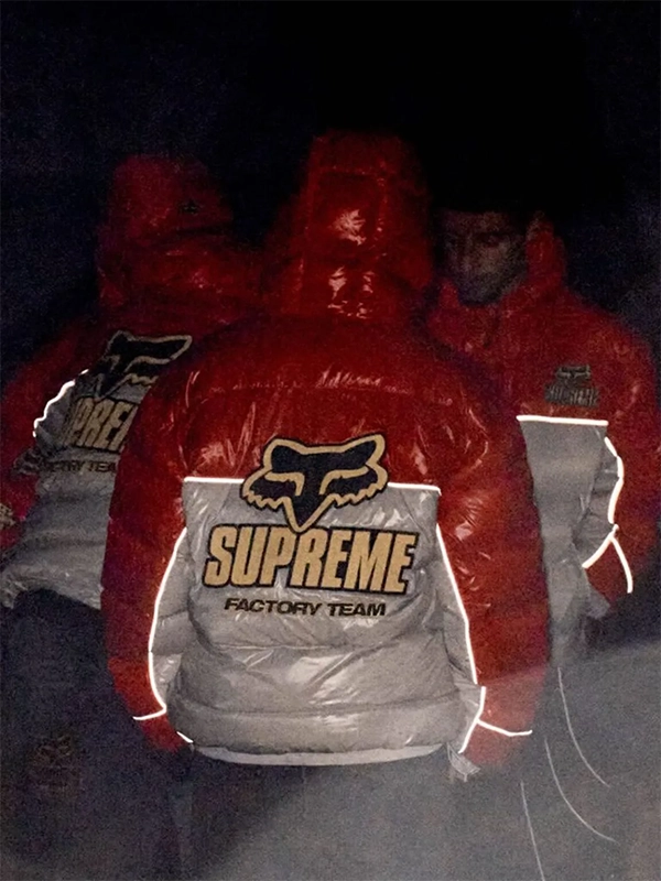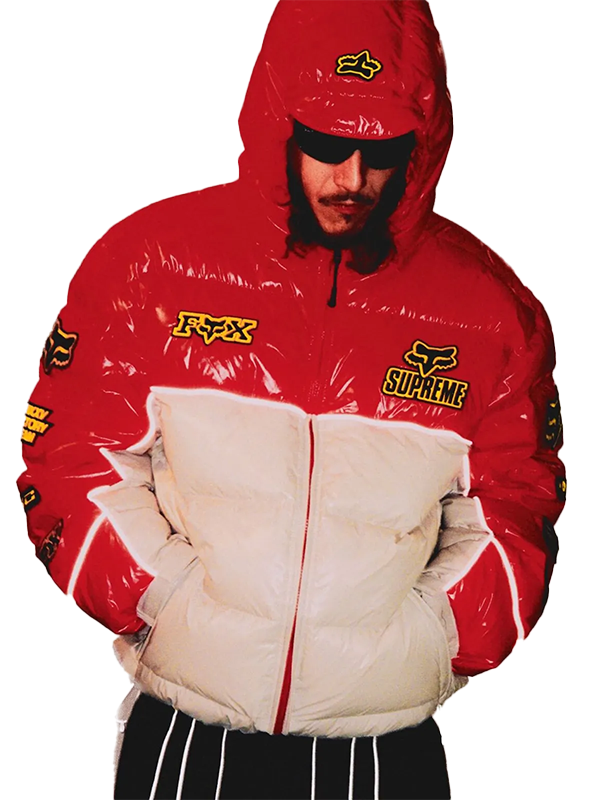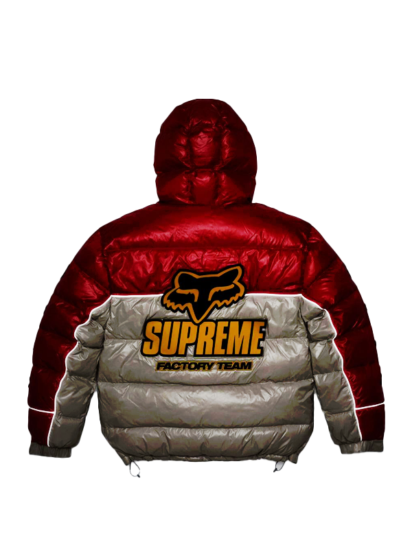 Buy the Supreme Fox Racing Shiny Down Puffer Jacket for a Bold Winter Streetwear Upgrade