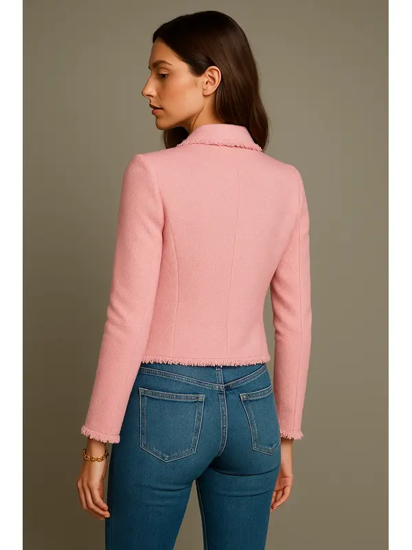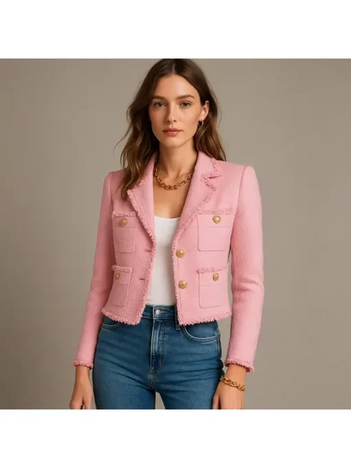 This is more than just a jacket. If you want a blend of style, comfort, and a stylish look, this Elegant Blazer from America Jackets is your perfect pick for the season. Specially designed for women who are obsessed with classic style and cozy apparel, this blazer will elevate your wardrobe. Get ready to make a fashion statement now. Place your order right away and grab this L’Agence pink blazer at a pocket-friendly price. If you happen to be ordering from the USA, UK, Canada, or Australia, you will get free delivery too.