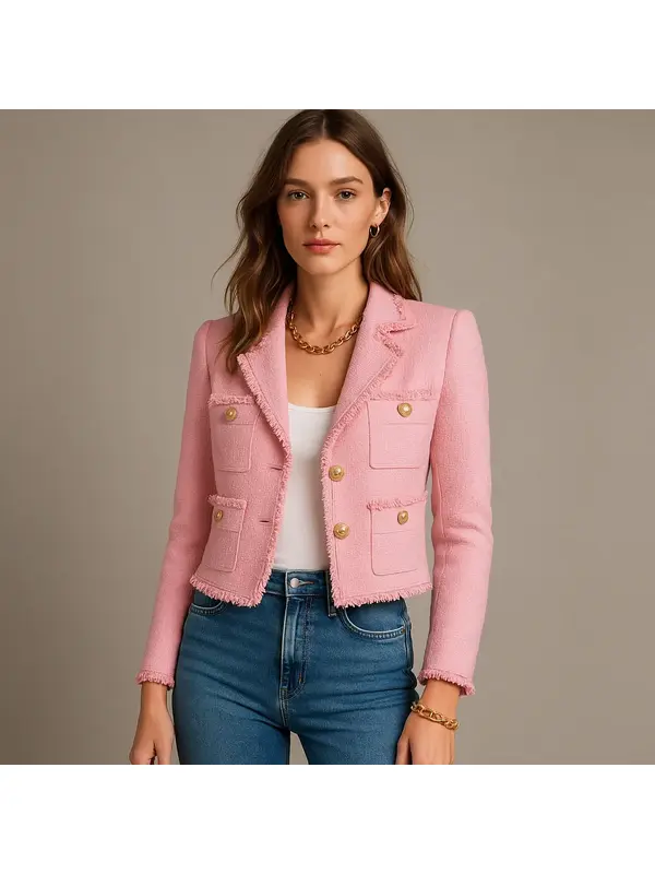 My boyfriend surprised me with this jacket for our anniversary and I’m obsessed. The gold tone buttons catch the light beautifully and the tailored lapel gives it a polished vibe I can dress up or down. I have already worn it on three date nights and it never fails to feel special.