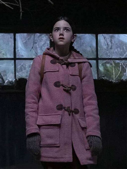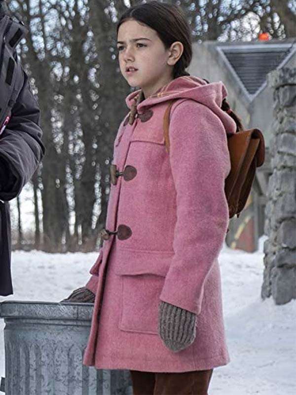 Tales From The Loop Young Girl Abby Ryder Fortson Pink Wool Hooded Coat