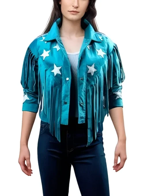 Her relationship with songwriting made her a superstar, and if you’re a fan of her music, you can’t miss out on her iconic looks. Why just listen to her songs when you can wear Taylor Swift Outfits inspired by her? America Jackets is here to make that possible with an exact of the jacket she wore. Made from durable fabric, this jacket is designed with a soft inner viscose lining for comfort. It features a stylish shirt-style collar and front button closure for easy wear. The open hem cuffs add to its casual appeal, while the standout feature is the fringes that make it unique and trendy. In an eye-catching blue, this jacket is perfect for anyone wanting to capture a bit of Taylor Swift’s style.
