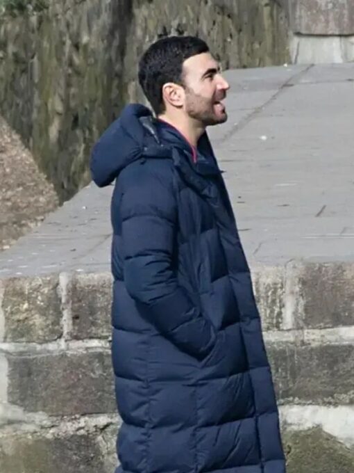Brett Goldstein Ted Lasso S03 Roy Kent Blue Hooded Puffer Coat