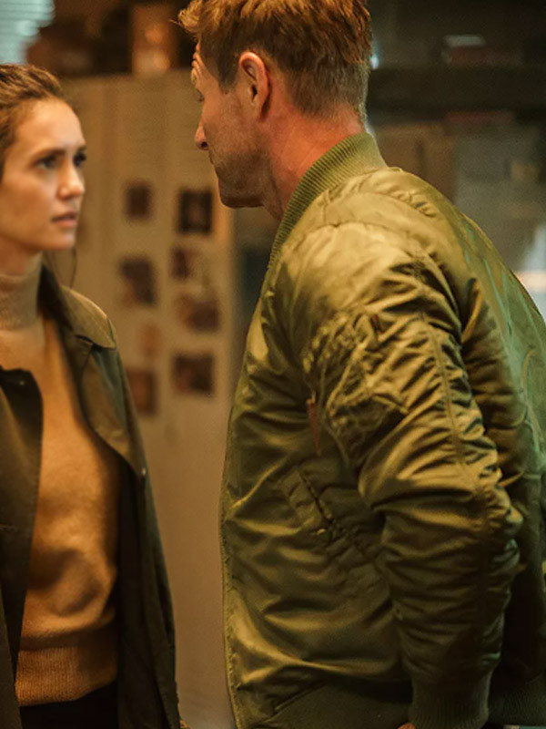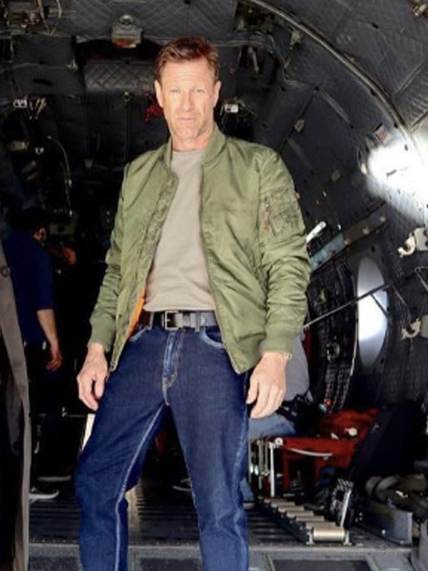 Vail The Bricklayer 2024 Aaron Eckhart Green Bomber Jacket