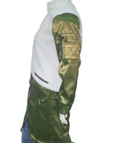 The quality fabric of shearling polyester fabric ensures a heavy amount of comfort and also retains heat. Furthermore, its amazing traits include a standup collar and front open zipper closure. For fast click to wear. Keep securing your body from harsh weather with its inside soft viscose lining inside which makes you fully covered and comfortable enough for the whole day. With its significant features indicated above the Robyn McCall Green and White Coat must deserve a secure place in your winter wardrobe. Its overall fascinating details turn your head towards it and left no reason to say no. So be ready to get it right now!