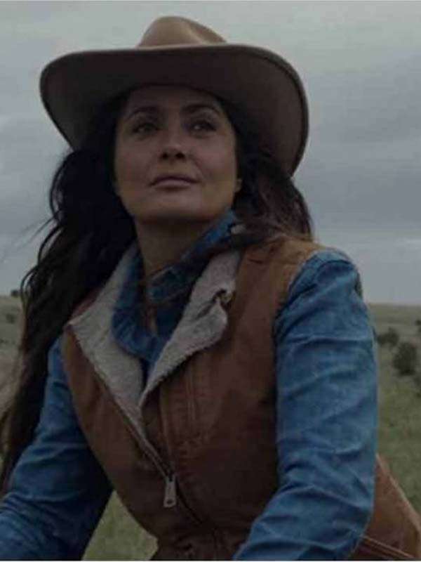 Salma Hayek The Eternals 2021 Ajak Brown Leather Vest