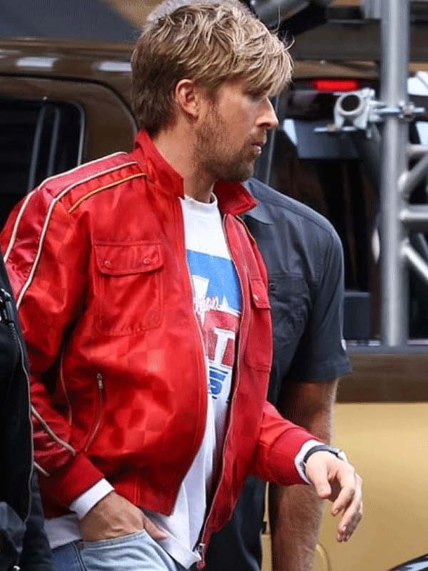 Ryan Gosling Movie The Fall Guy 2024 Red Leather Jacket