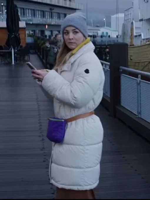 The Flight Attendant Season 02 Kaley Cuoco White Puffer Coat