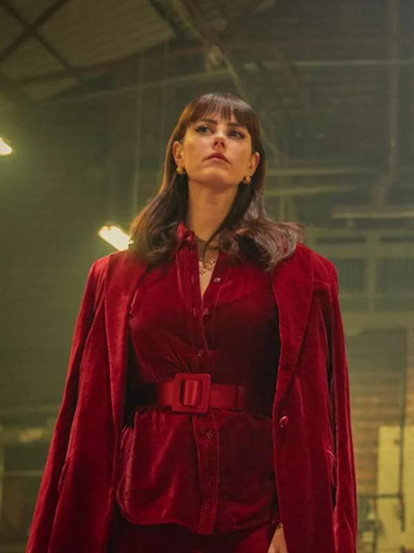 Kaya Scodelario The Gentlemen 2024 Red Velvet Blazer