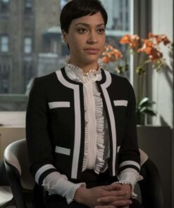Lucca Quinn TV Series The Good Fight Cush Jumbo Black And White Trim Jacket