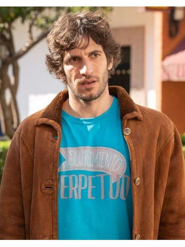 Javier TV Series The Neighbor Quim Gutiérrez Brown Suede Leather Coat
