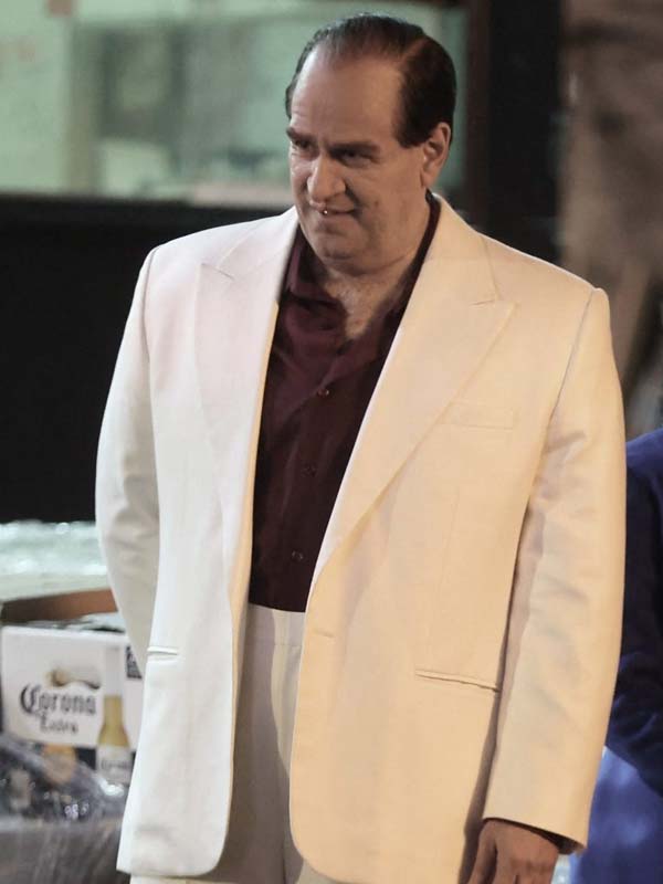 Colin Farrell The Penguin 2024 TV Series Oswald Cobblepot White Blazer
