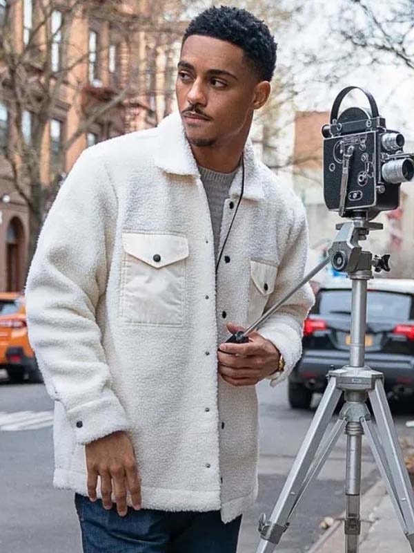 Eric Movie The Perfect Find 2023 Keith Powers White Shearling Jacket