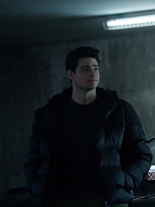 Owen Hendricks The Recruit Noah Centineo Black Puffer Hooded Jacket