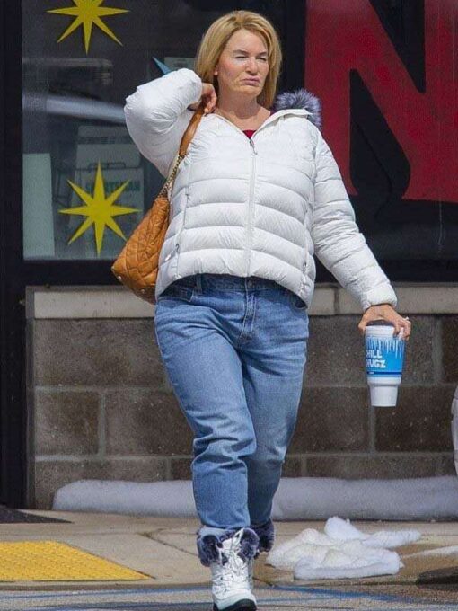 It’s time to peak up your intellect for an upcoming American crime drama TV series ‘The Thing about Pam’. This reality-based murder thriller is starring significant characters Renee Zellweger, Josh Duhamel, Judy Greer, and many others while Jenny Klien will be functioning as showrunner. This crime drama series will fold over the 2011 murder mystery of Betsy Faria. The primary beliefs change all suspense towards her husband which was later revoked. While further investigation, a vicious and fiendish pattern embattled involving Pam Hupp was played by Renee. The leading actor Renee has been spotted dressed in wonderful apparel for winter control. One of the masterpieces is Pam Renee Zellweger White Puffer Jacket with Fur Hood by costume stylists Shawn Holly and Cookson.