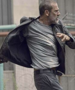 Negan The Walking Dead S09 Jeffery Dean Morgan Black Leather Jacket