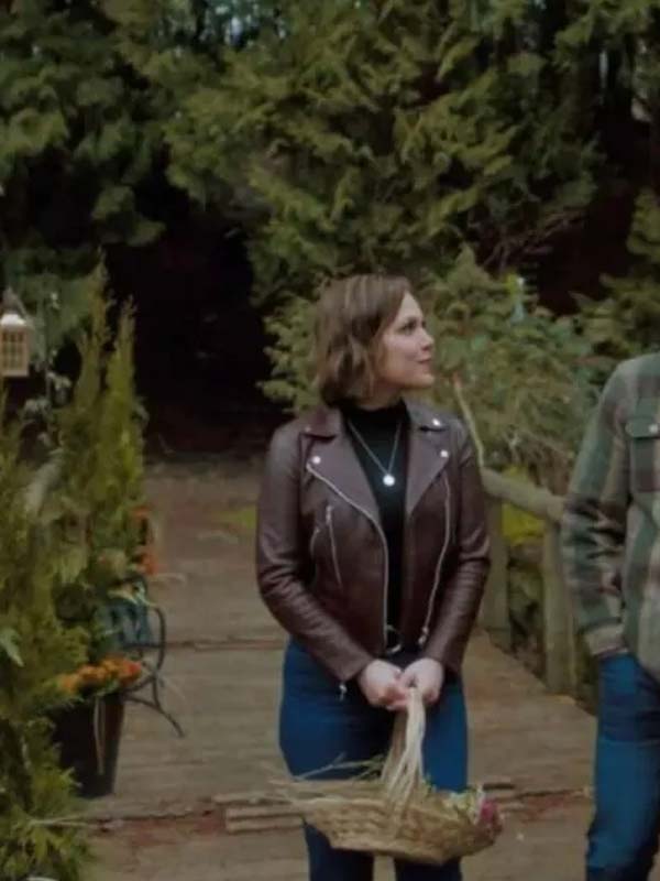 Vanessa Doyle The Wedding Cottage 2023 Erin Krakow Brown Biker Leather Jacket