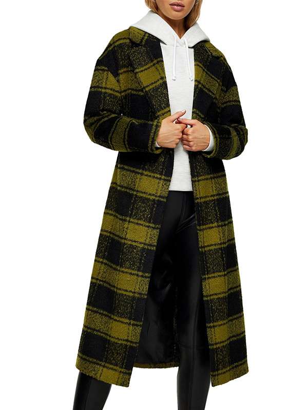That is carried by Mary Holland in The Woman in the House Across the Street from the Girl in the Window. The long coat is the best quality augmentation of wool material that provides you warmth, and the inner is accommodated with viscose fabric to give a smooth and soft touch. It has a front buttoned closure so that you can style it according to your choice. The plaid coat has long sleeves with buttoned shutting cuffs on them.