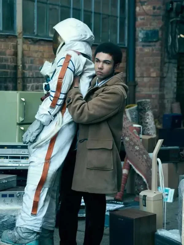The front of the coat features a distinctive toggle closure, adding a unique and stylish element to its design. This closure not only enhances the coat’s aesthetic appeal but also provides a secure and easy-to-use fastening method. The hooded collar is another standout feature of this TV Series Outfits, offering added protection against the elements while contributing to the coat’s overall stylish look.
