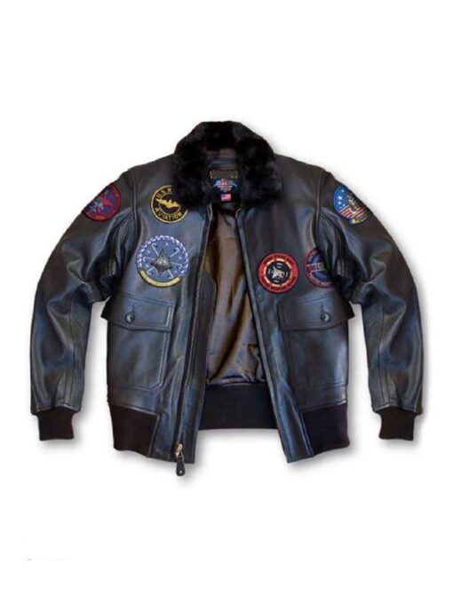 To be known as one of all the classics, bomber jackets never goes out of style. Whether it’s a casual, semiformal, or formal occasion, bomber jackets set the perfect outerwear selection as a trend and can easily exist with items in your closet. The Top Gun Bomber Black Leather Jacket has a fur collar, patches on both sides, and two outside pockets.