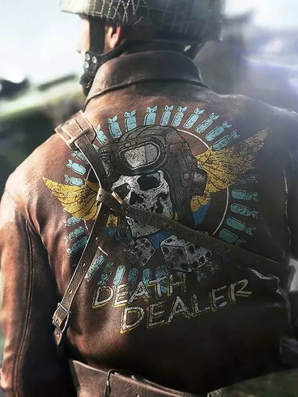 Immerse yourself in the world of Battlefield 5 with the striking Death Dealer Leather Jacket, expertly crafted from sheepskin or Vegan leather. This iconic jacket boasts a classic brown hue that exudes an edgy yet sophisticated aura, encapsulating the essence of the battlefield.