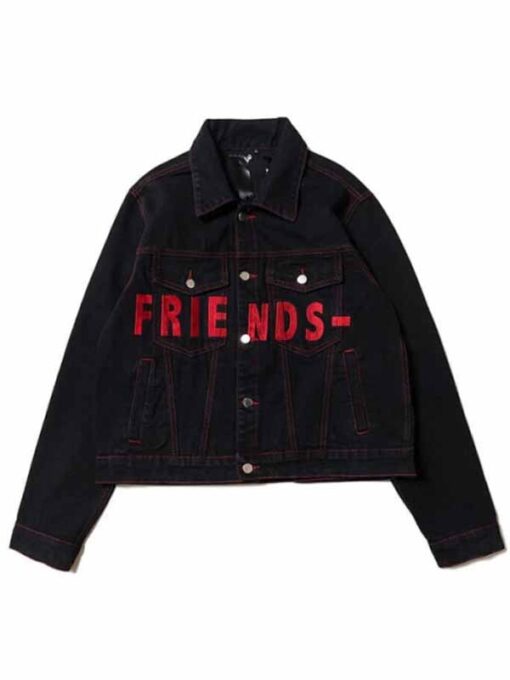 Looking to add a finish of luxury and elegance to your wardrobe? Go right with our Vlone Friends Jacket. The durability of the fabric is something that a person looks for more to add, and it is the best healer for those who want both style and fashion and give worth their money on clothes every new season. The denim fabric is a perfect choice in this regard because it looks super stylish and trendy while its longevity is unmatchable. Denim is famous for its unique style and modern chic look and when is highly comfortable. it’s worth multiplying many times. We are here with a great launch of VLONE Friends Denim Jacket which is a flawless VLONE-inspired product.