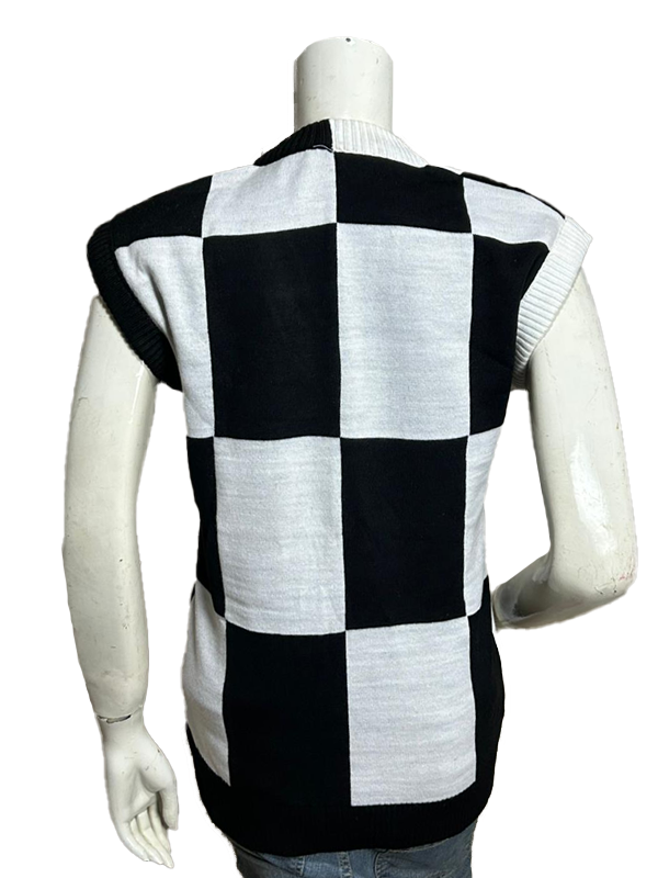 The sweater vest has a pullover-styled closure and V-neck closure, which gives you and nice yet charming look and keeps away your body chilled. The best detail in the sweater vest is that, it’s in Black and white color checkered design.