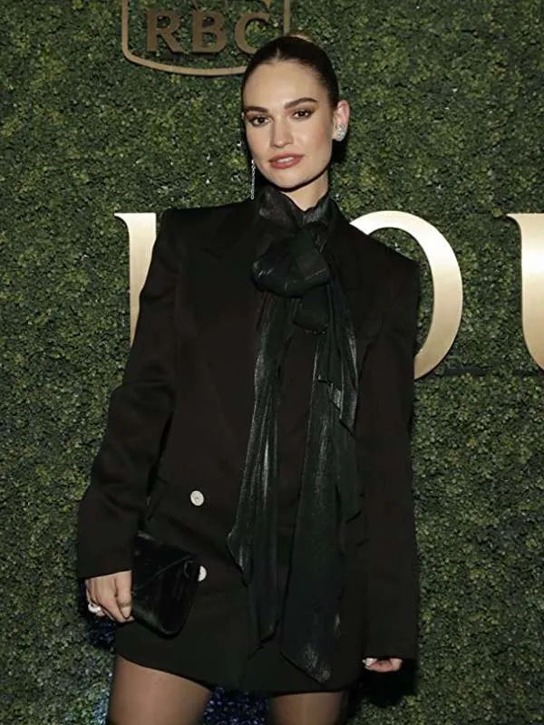 Zoe Stevenson What’s Love Got To Do With It 2022 Lily James Black Coat