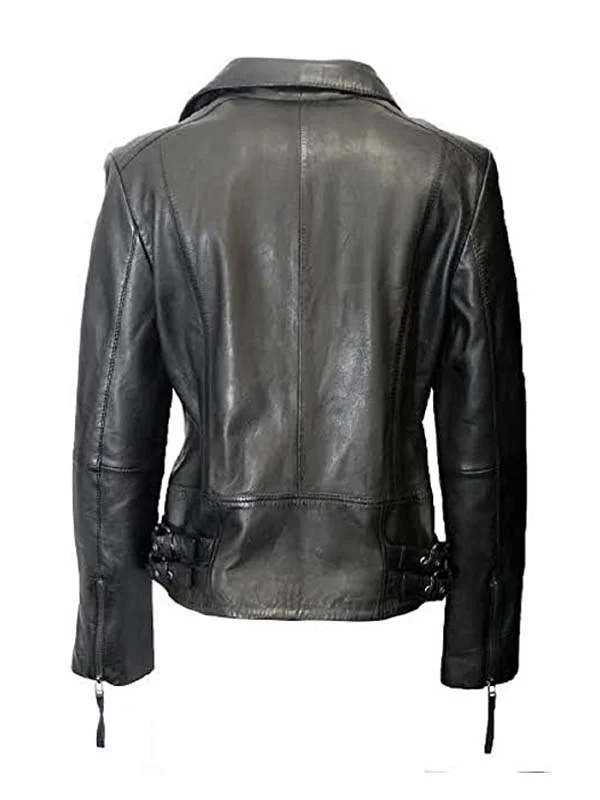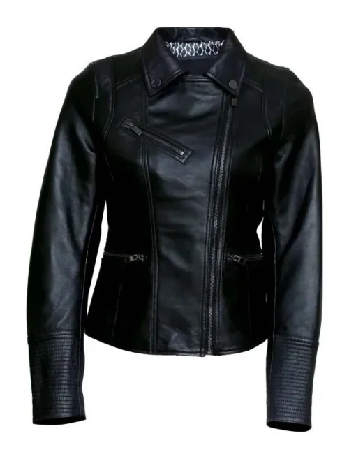 Women Black Leather Motorcycle Slim Fit Jacket