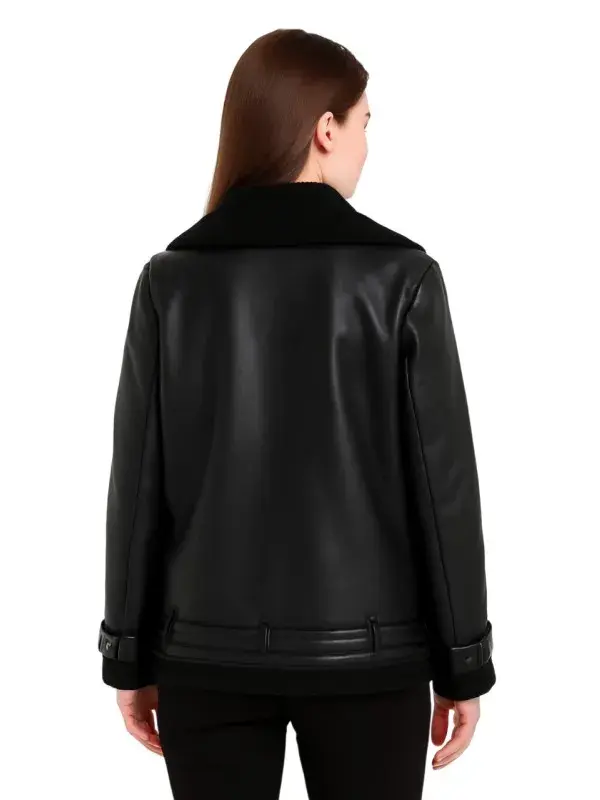 Aviator Black Vegan Shearling Fur Jacket For Womens