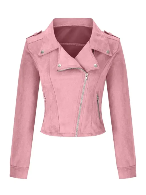 Shop Womens Biker Pink Suede Jacket for a Bold, Polished Look