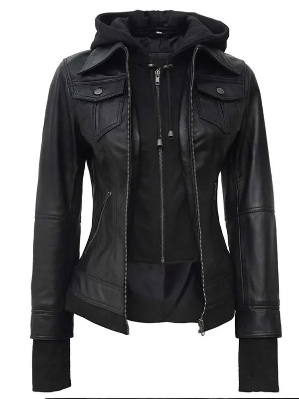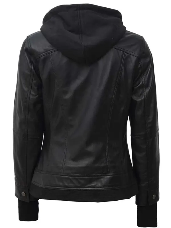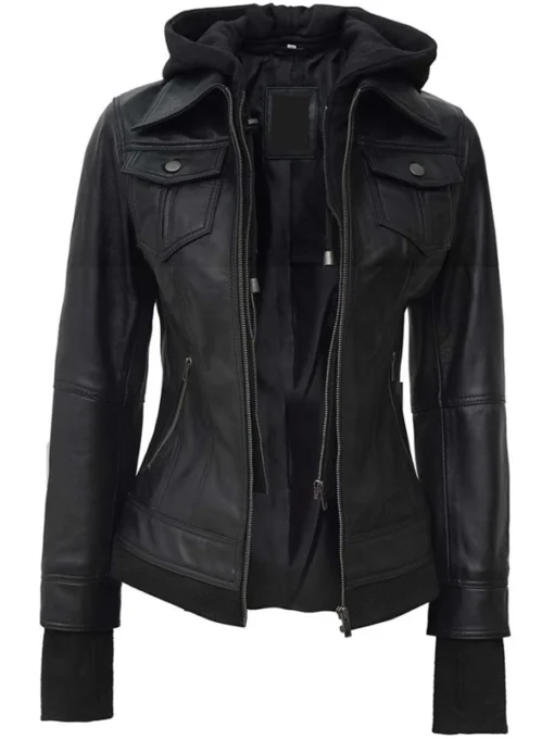 Shop the Sleek Womens Black Leather Bomber Jacket With Removable Hood That Define Edge and Style