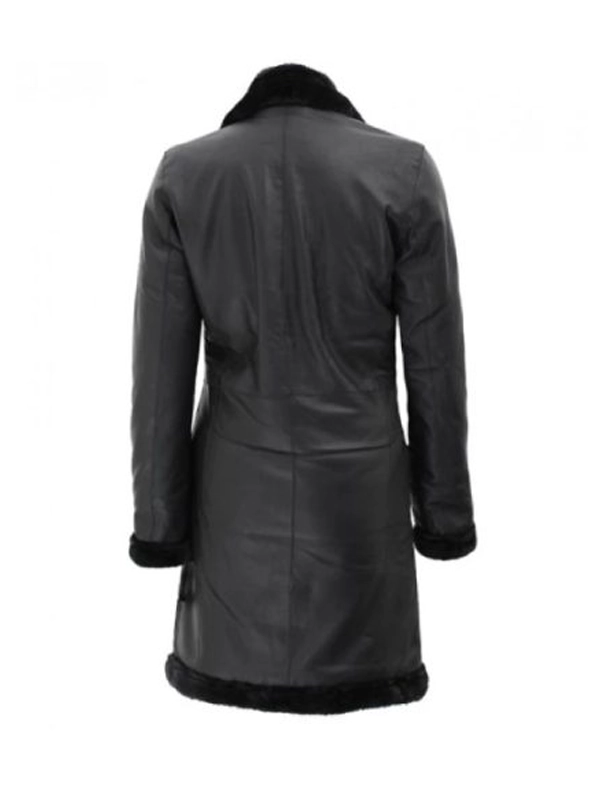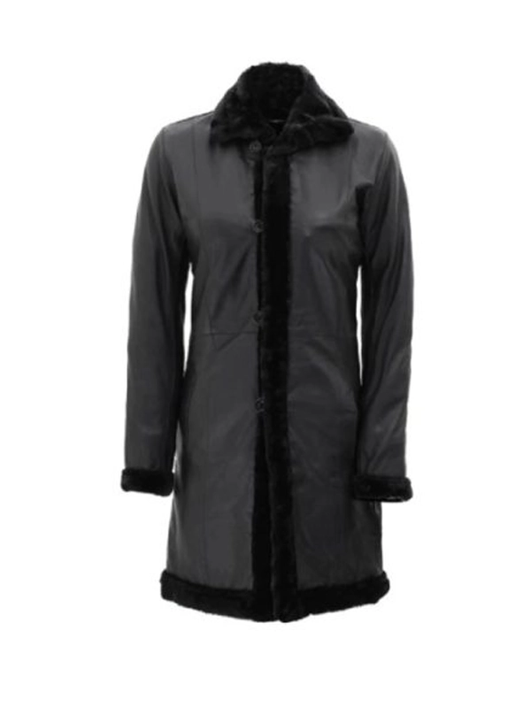 Women’s Black Leather Long Shearling Coat