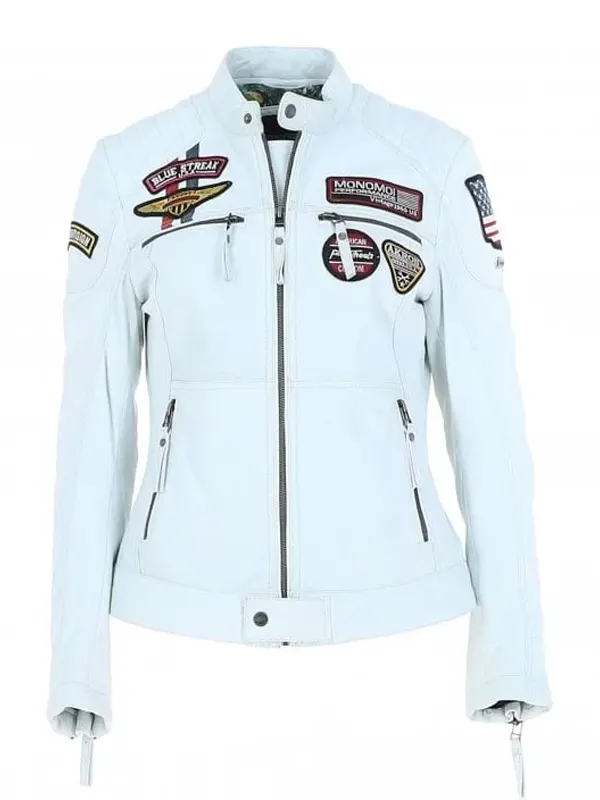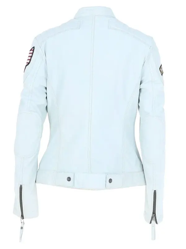 Women’s Fashion Leather Biker Style Jacket White Lexica