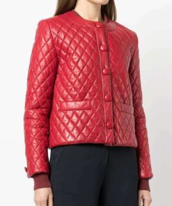 Additionally, its bold and vibrant red color adds an element of excitement to your outfit, making this jacket a standout piece in your wardrobe. The quilted texture not only contributes to the jacket’s fashionable appeal but also provides additional warmth, making it suitable for various occasions and seasons. This Women’s Lambskin Quilted Red Jacket is the perfect choice for those who appreciate both style and substance in their outerwear, combining classic elegance with a touch of modern flair.