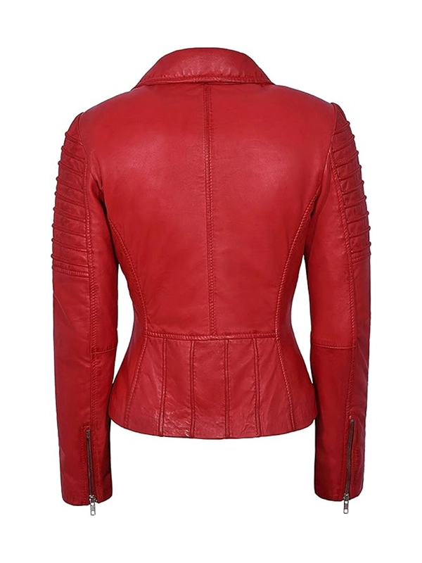 Womens Red Leather Biker Jacket