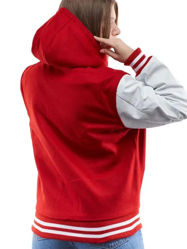 Women’s Varsity Bomber Leather Jacket In Red