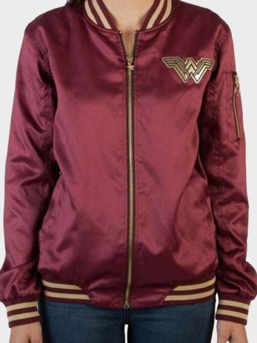 Burgundy Wonder Woman Varsity Letterman Jacket