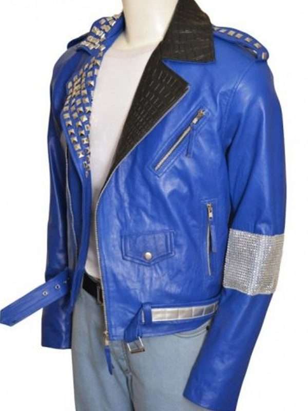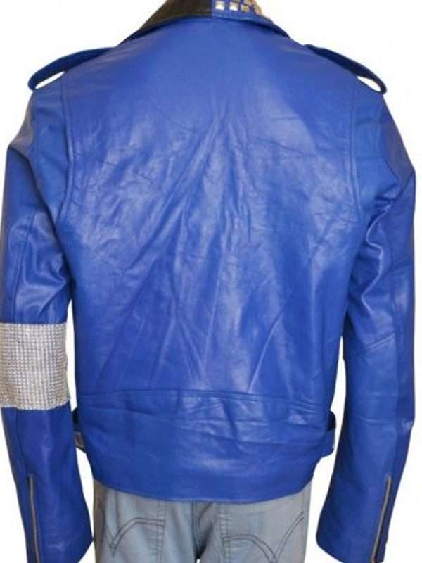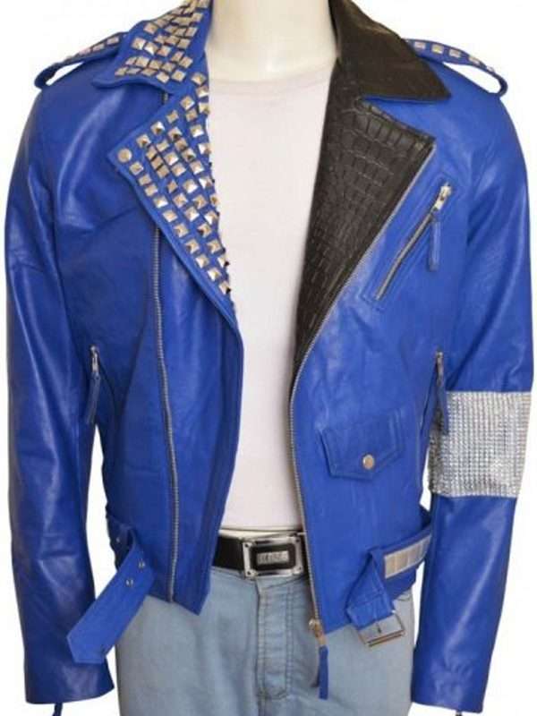 The Brian Kendrick Jacket is available in blue eccentric color. The material used to craft this is real leather and inner viscose lining. The jacket has also iconic features like it has a metal stud lapel collar. The full sleeves of the jacket attached a silver patch on the left sleeve. It has a waist belt, two side zipper pockets, one slanted pocket at the chest and one flapped button pocket. Why is it unique? Because of the design, metal stud two-shoulder epaulets, you can stand out by creating a magnificent look.