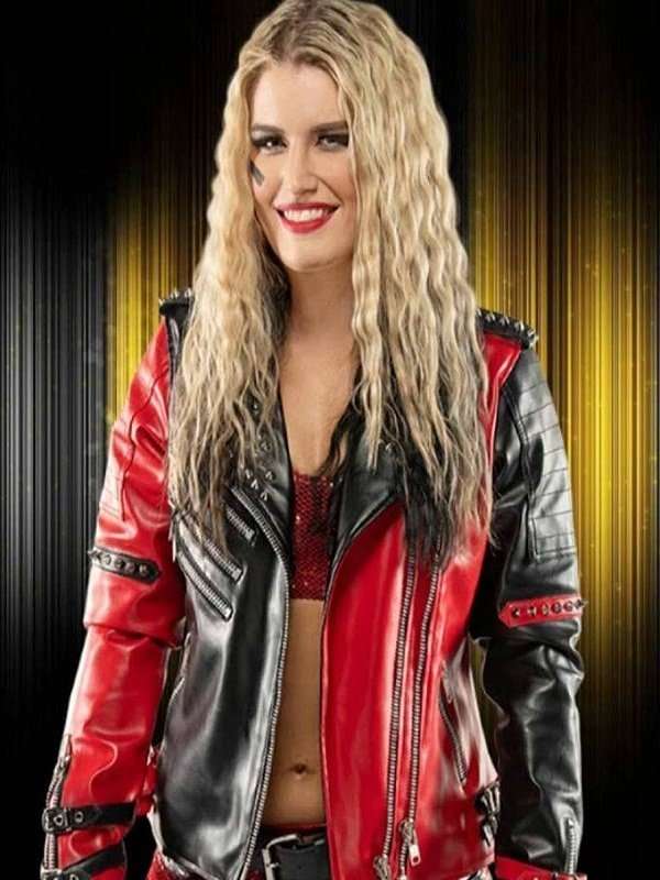 She has been seen wearing this stylish leather jacket named WWE Toni Storm Studded Biker Jacket. The jacket is a studded leather one, which is among the best celebrity jackets. The jacket is designed out of real leather, and has a collar shirt lapel style, with an inner soft viscose lining. The inside is lined with viscose lining making the jacket very comfortable and cozy as well. It has full-length sleeves and open cuffs. Its zipper waist pockets come in an amazing combination of red and black color.