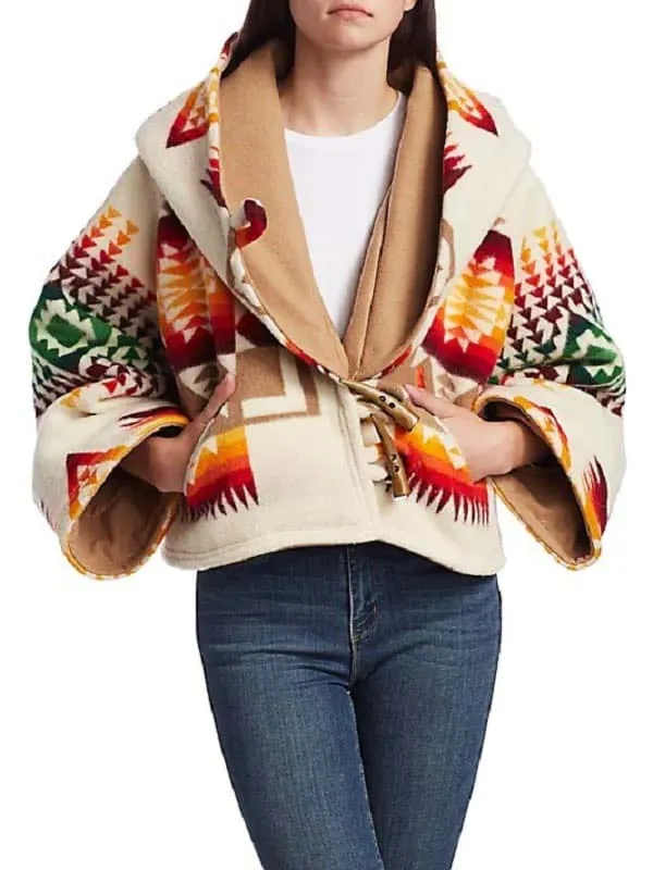 Hey there! So you know I am all about channeling some serious Yellowstone Beth Dutton White Poncho Coat vibes right from the heart of Yellowstone imagine wrapping yourself in the very essence of Beth with this stunning white poncho coat picture it soft luxurious wool blend that just screams comfort and style and lets talk about that chic black and brown print its not just any coat its a piece of Beths bold and fearless spirit tailored just for you this is not just a poncho its a statement.